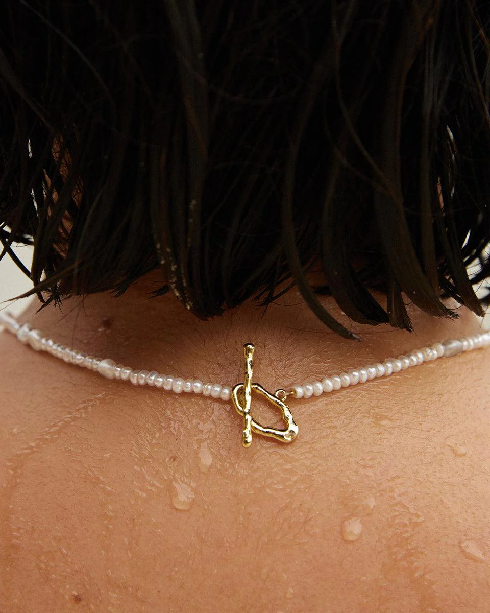 Beaded with white and grey freshwater pearls, this necklace was handmade to stand out against your sun-kissed skin. A reminder to cherish the small and delicate things in your life.
